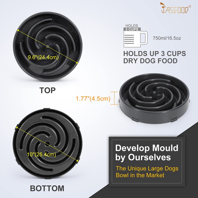 - 🐶 SIZE&COLOR 🐶--- We have black,blue,pink, dark gray,light gray five color for your choice. Bowl Diameter: 9.6”/24.4cm. High: 1.77”/4.5cm.This slow bowl can holds about 3 cups of dry dog food. The slow feeder dog bowl is better for medium and large dogs.Warm tip:Not for puppy and cat!