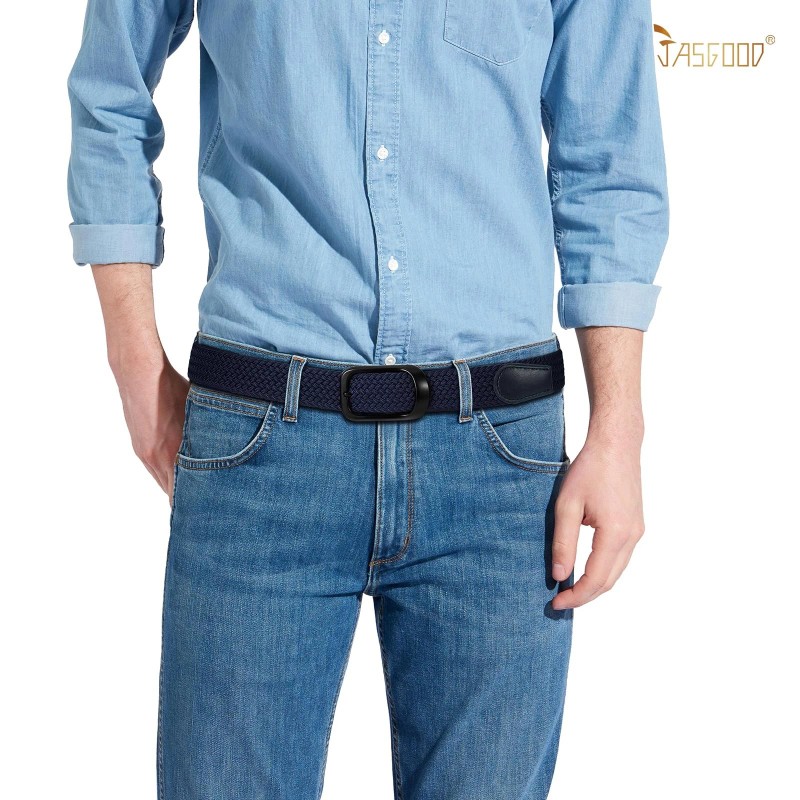Fully Adjustable Woven Belt---This men elastic belt has 5 sizes, fits waist size from 26" to 49". No hole design let you adjust this mens casual belt to any size. Looks Great with jeans pants, street wear.