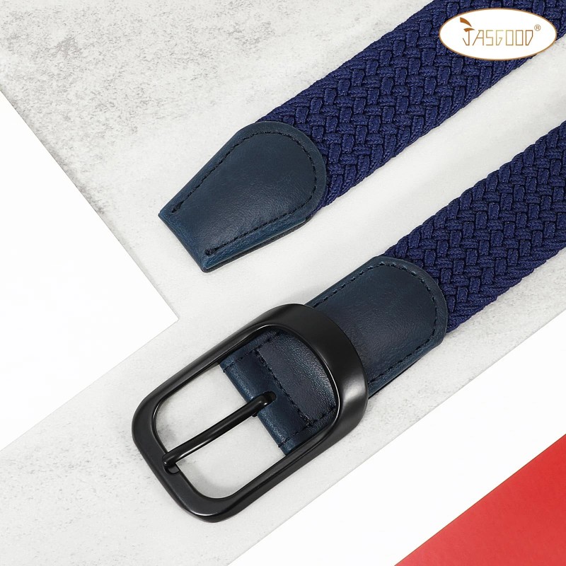 Jasgood Stretch Belt for Men, Men Elastic Woven Braided Belt 1 Fit Size 45"-49" F-blue