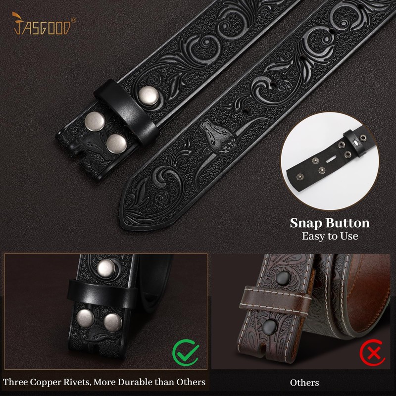 This western cowboy belt strap is made of whole cowhide, soft to the touch, durable, and can stand the test of time. 3 copper snap buttons, the structure is very stable, press open to replace the button, very simple and convenient. Whether you wear jeans to a cowboy party, a country concert, or are looking for a stylish and supportive belt for everyday wear, this western cowboy belt will meet your needs and make you stand out from the crowd.