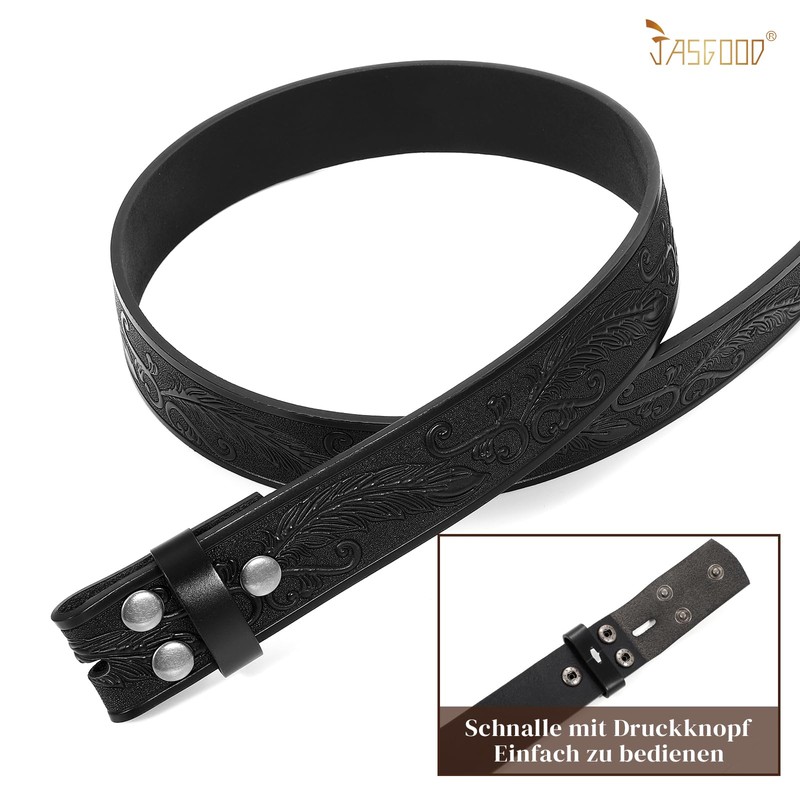 JasGood Western Leather Men's Belt (without Buckle), 3.8 cm Width, G Style-Black