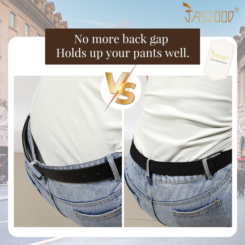 JASGOOD Women No Show Stretch Belt Invisible Elastic Hook and Loop Strap Belt...
