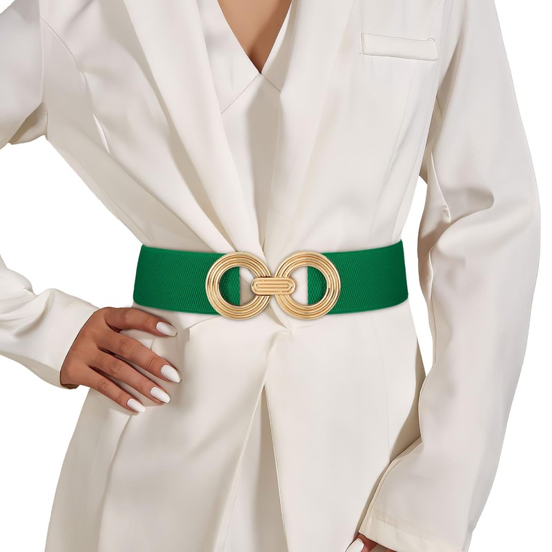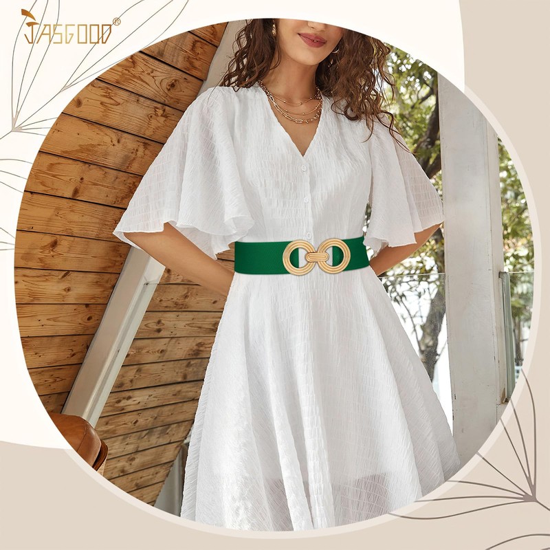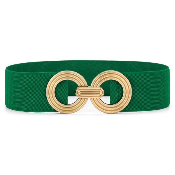 JasGood Women's Wide Elastic Waist Belt Stretchy Belt for Dresses Hip Belt Golden Buckle Belt for Women, Green