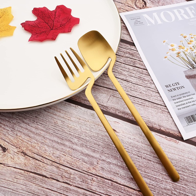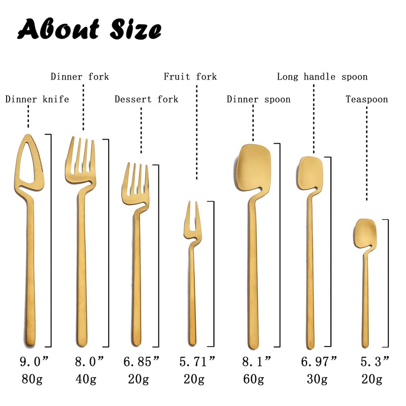 - Hangable Design -- This flatware have a head concave design, you can hang the flatware on the plate,cup etc to avoiding staining or mess on table.