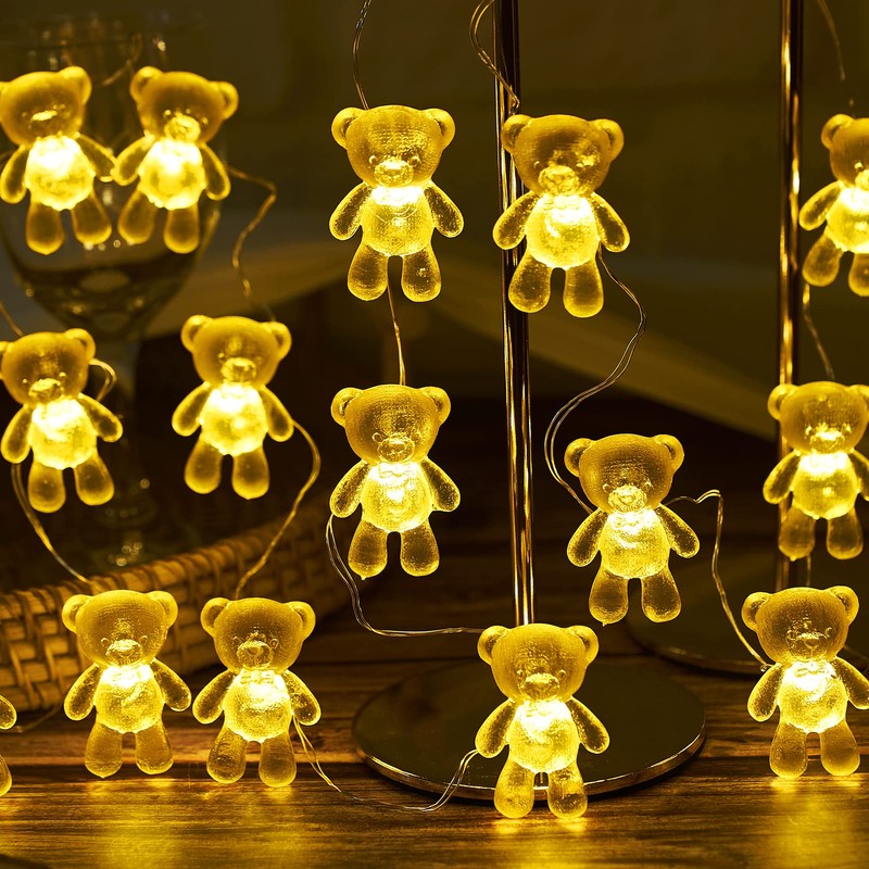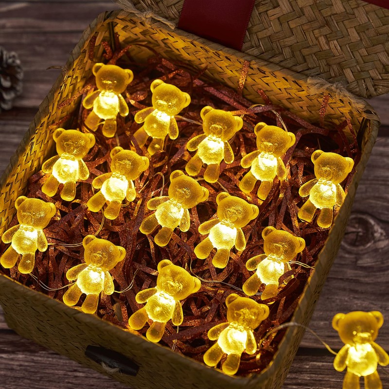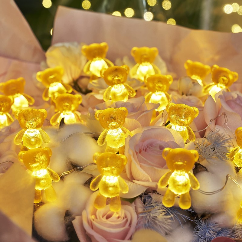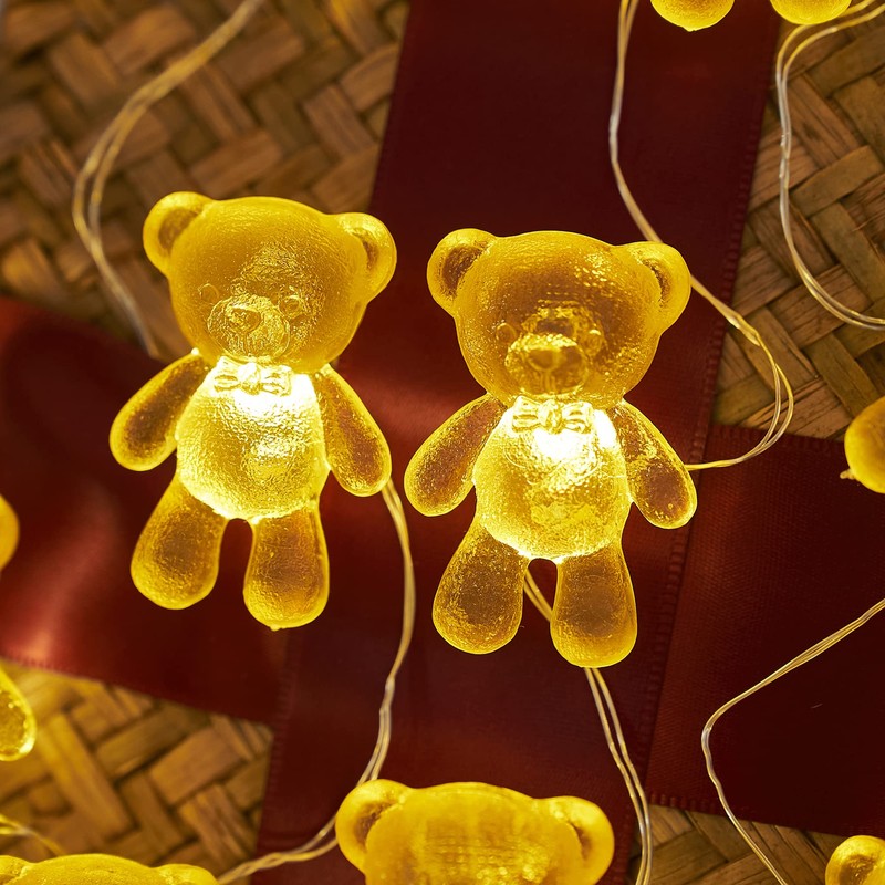 - 【Cute Golden Teddy Bears】THREE DIAMENSIONAL Teddy Bears decorative string lights, super cute miniature with rich details, Not flat on one side. We design the figures as big as possible for copper wire lights. Great romantic gifts or tree ornaments or cottagecore bedroom string lights.