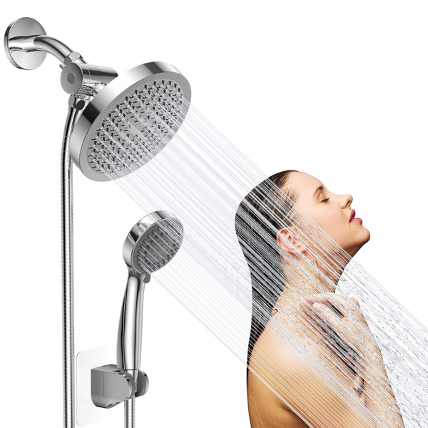 Jasinber Combo de cabezal de ducha de lluvia de alta presión de 6 "/ ducha de mano, con manguera de 1,5 metros y cabezal giratorio ajustable (Cromo)
