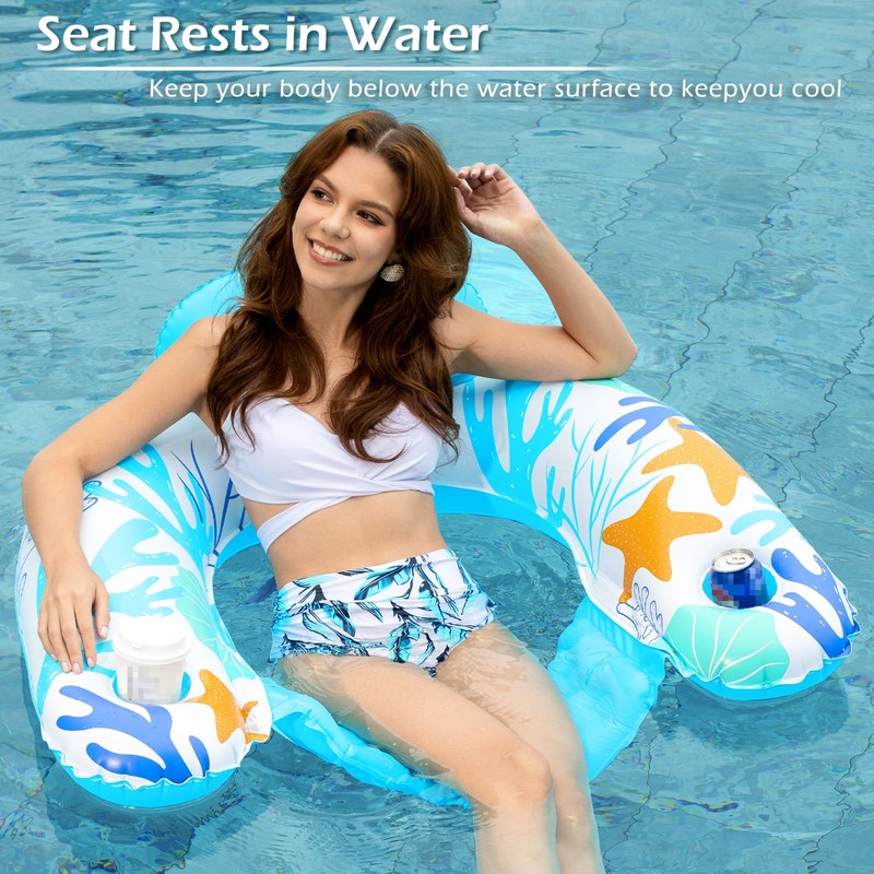 • Water Chair Pool Float - The seat rests in water that keeps your body below the water surface to keep you cool. Perfect pool floaties inflatable lounger for outdoor pool parties, beach, lake, river and more.
