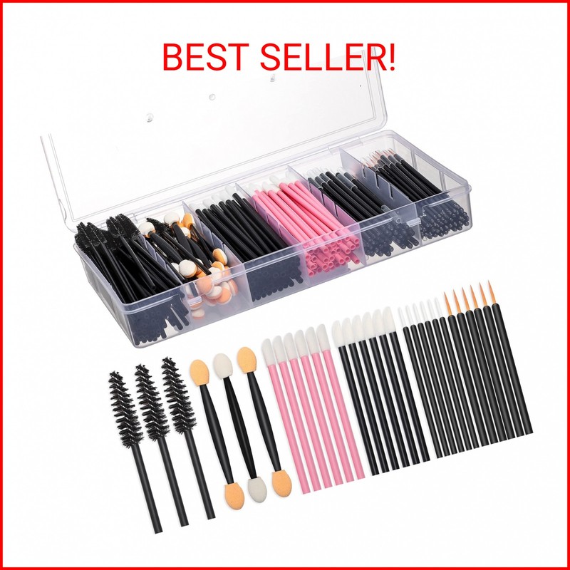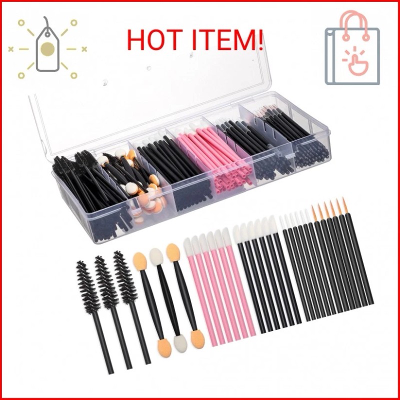 JASSINS 300pcs Disposable Makeup Tool Kit,Brow brush/Mascara brush/Lip Applicators/Ey