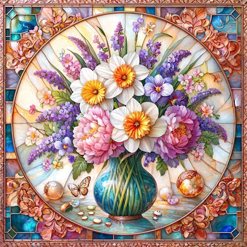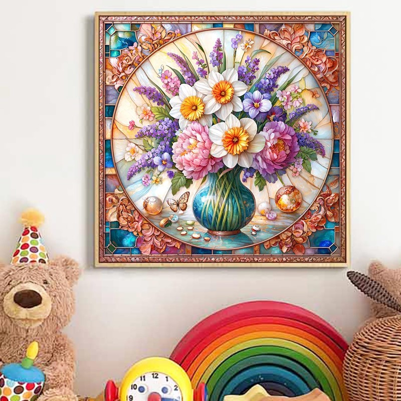 JATOK Paint by Numbers Adults, Paint by Numbers, DIY Retro Flower with Brushes and Acrylic Paints, Hand Painted Oil Painting Canvas for Home Decor, Without Frame, 40 x 40 cm / 16 x 16 inches
