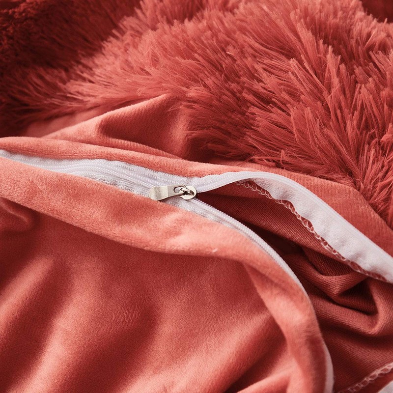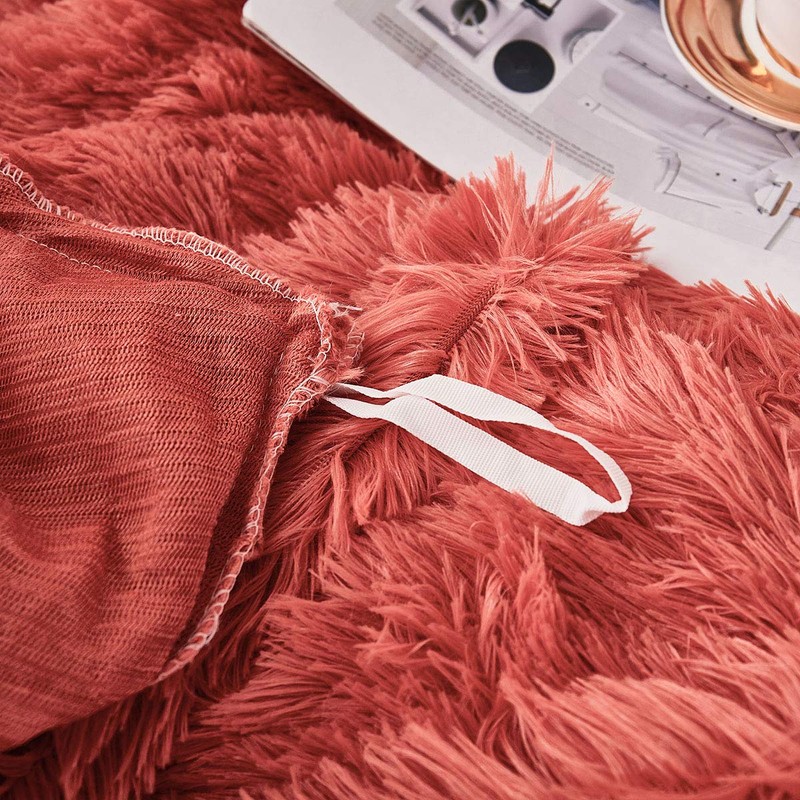 - PRODUCT FEATURES: Ridiculously delightful 100-percent polyester microfiber faux fur shaggy, with a velvety soft under layer, silky soft on both sides. The unique gorgeous fluffy design can elevate your bedrooms/guest rooms to super luxe status, give everything a finished, posh look. Hidden zipper closure for duvet cover and pillowcases. Ties in the corners of the duvet cover to help keep the duvet in place.
