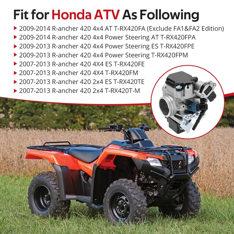 - Fitment:Fit For Honda ATV As Following: 2007-2013 R-ancher 420 4X4 ES T-RX420FE; 2007-2013 R-ancher 420 4X4 T-RX420FM; 2007-2013 R-ancher 420 2x4 ES T-RX420TE; 2007-2013 R-ancher 420 2x4 T-RX420T-M; 2009-2014 R-ancher 420 4x4 AT T-RX420FA (Exclude FA1&FA2 Edition); 2009-2014 R-ancher 420 4x4 Power Steering AT T-RX420FPA; 2009-2013 R-ancher 420 4x4 Power Steering ES T-RX420FPE; 2009-2013 R-ancher 420 4x4 Power Steering T-RX420FPM