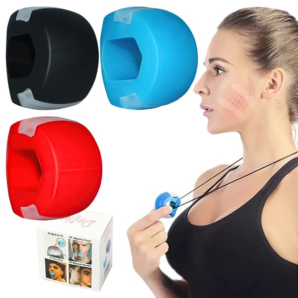 Jaw Exerciser, 3Pcs Jawline Exerciser, Natural Face & Neck Lifting Exercise, Mouth Exerciser Face Slimmer Double Chin Reducer for Men & Women (Black+Blue+Red)
