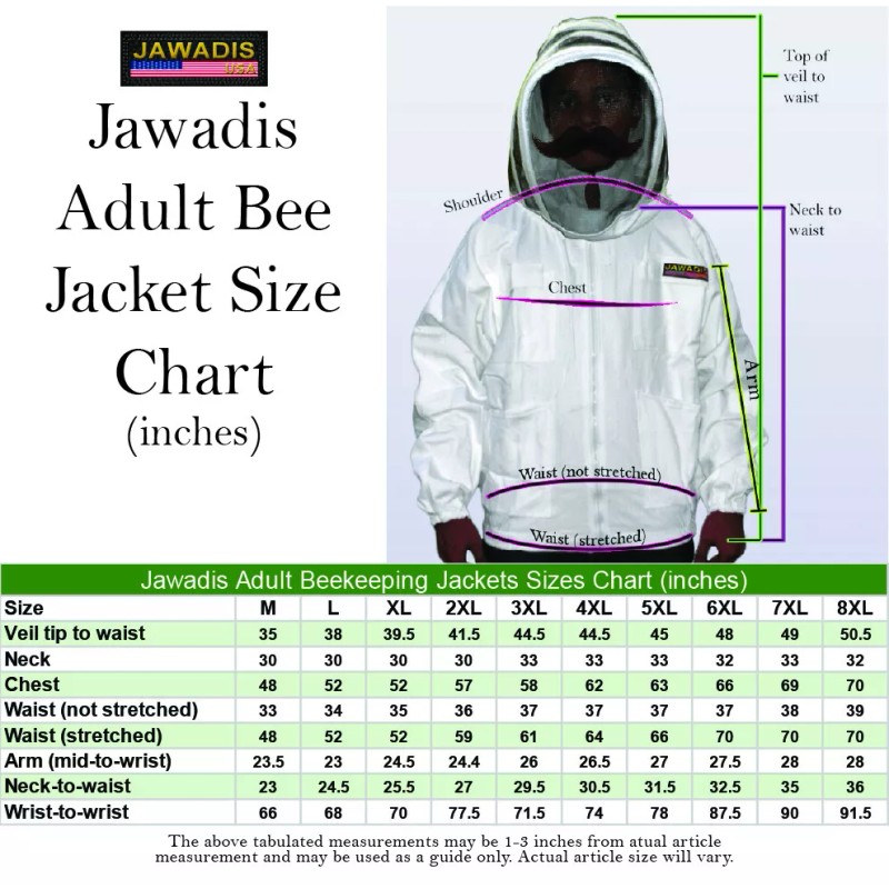 Jawadis USA White Heavy Cotton Beekeeper Jacket with Removable Veil - 3XL Size - Protection
