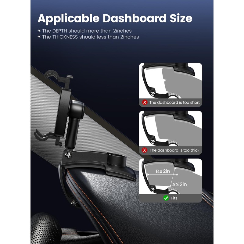 • Non-slip base: Uses a soft non-slip base to firmly grip the dash, reducing the risk of scratching and dropping.