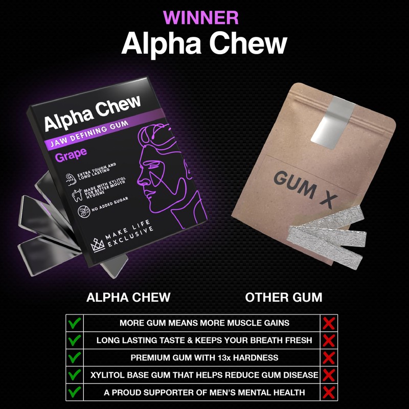 - BE BETTER, LOOK BETTER, FEEL BETTER - Strengthen and define your jaw with our Jawline Gum, designed to make you feel more confident and stand out from the crowd. 13 times harder than normal gum with delicious Grape Flavour