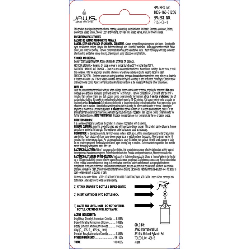 - JUST ADD WATER: Fill the JAWS Reusable Bottle (sold separately) with water, insert the JAWS Refill Pod and apply the trigger sprayer to release concentrate.