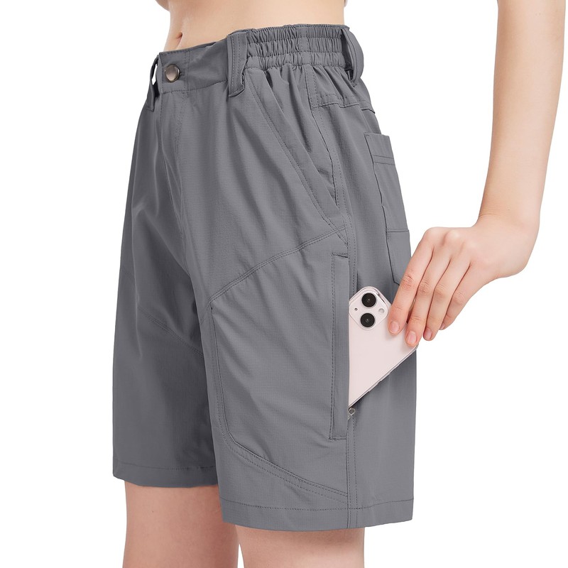 women cargo shorts with side elastic waist to prevent pressure marks on the tummy and offers a custom fit during hiking or athletic.