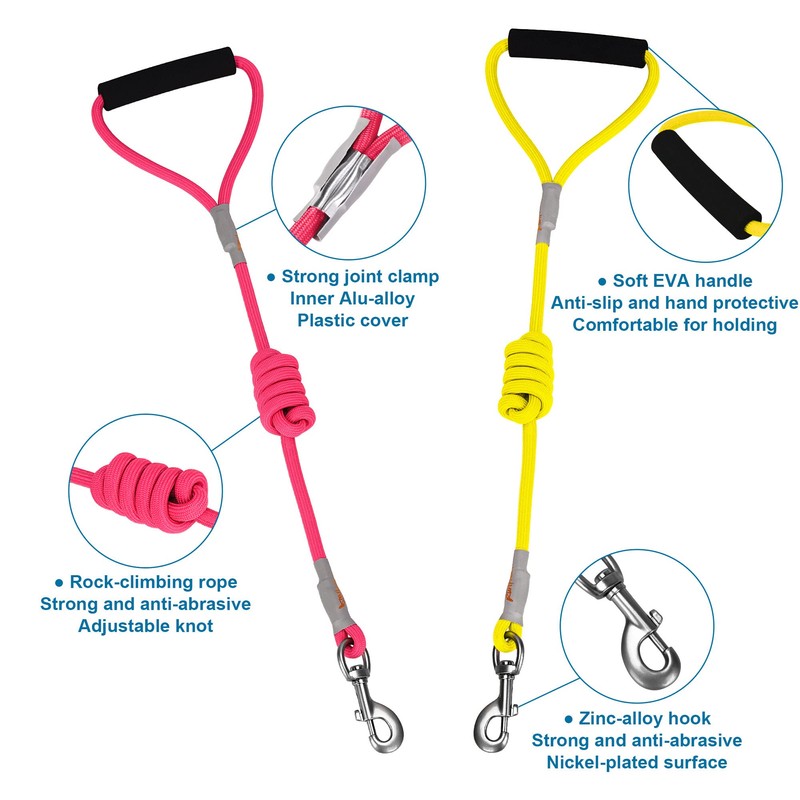 * Durable rope leash is fitted with a solid nickel-plated zinc alloy clip