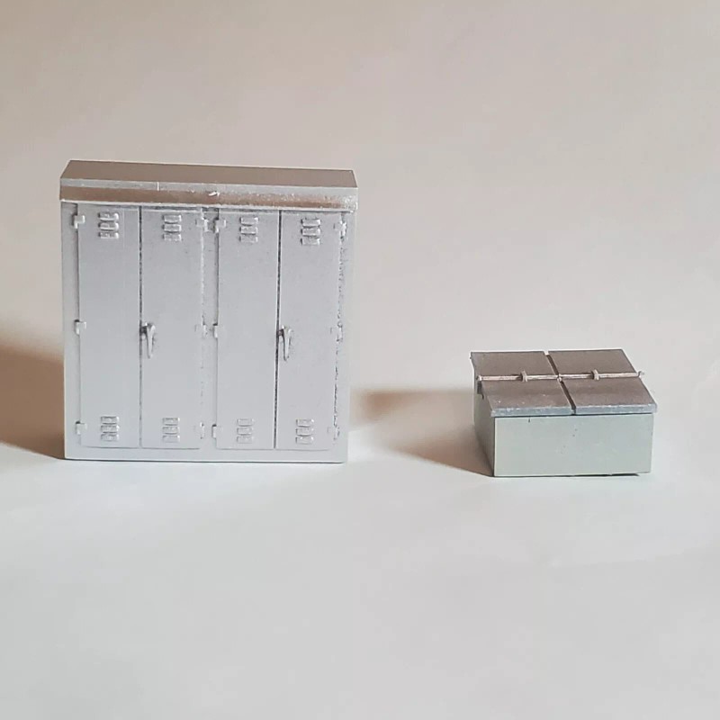 The model is resin 3D printed for maximum detail in S scale (1:64), and measures approximately 1.1" wide, 0.4" deep and 1.1" tall. The battery box is approximately 0.65" wide, 0.65" deep and 0.28" tall. The model comes unpainted.