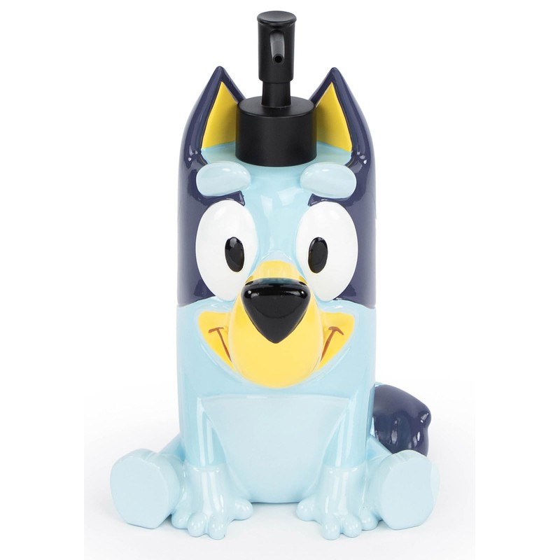 - FUN & ADORABLE DESIGN - Kids will love getting the chance to wash or sanitize their hands with the playful designs of their favorite Bluey characters. The vibrant colors of this soap dispenser will make your child's daily routine feel like playtime! Lotion pump measures 5.5 x 4.7 x 8 inches.
