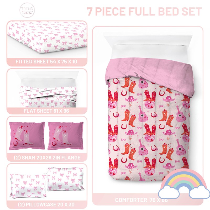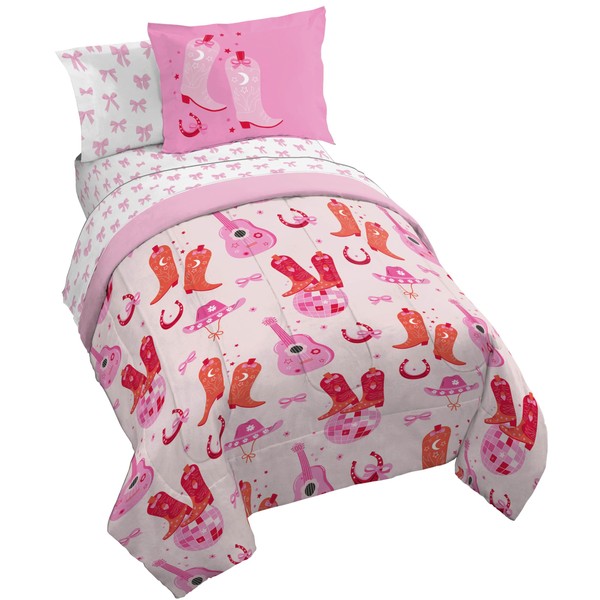 Jay Franco Cowgirl Boots & Bows Full Comforter Set - 7 Piece Bedding Includes Sheet Set & Pillow Covers - Super Soft Cozy Pink Disco Bedding