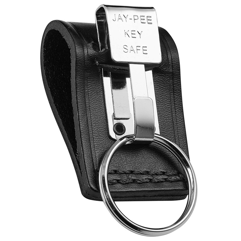 JAY-PEE Metal Key Ring Holder on Leather Belt Loop Mount Slide-On fits up to 2.25” wide Duty Belts with 1 Detachable Key Ring Safety Hook Nickle Keychain Holder Clip