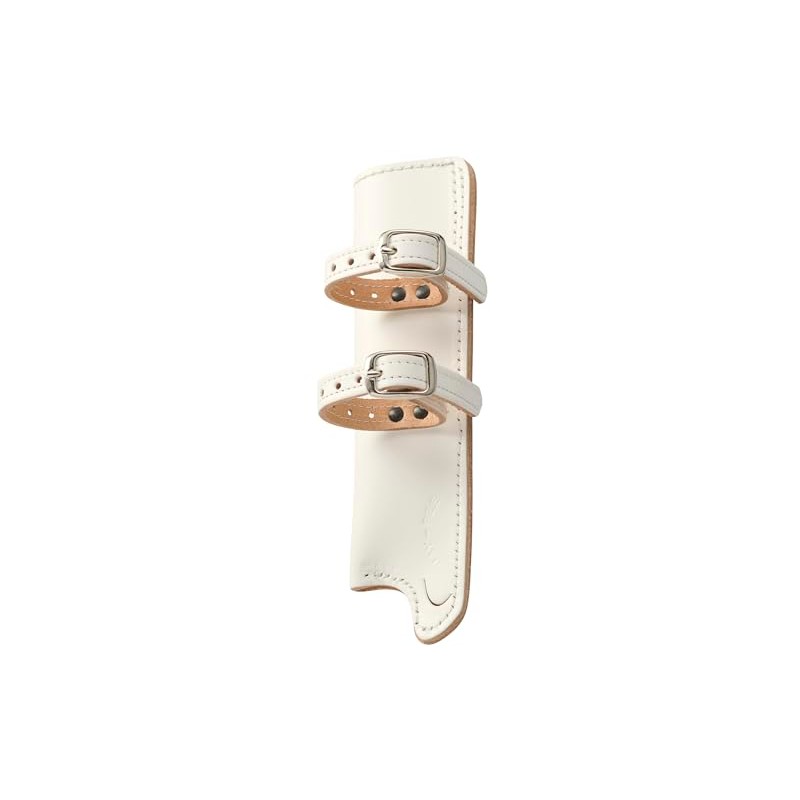 JAY-PEE White Leather Horse Flag Carrier with Chrome Hardware. Double Strap for Secure Stirrups Attachment