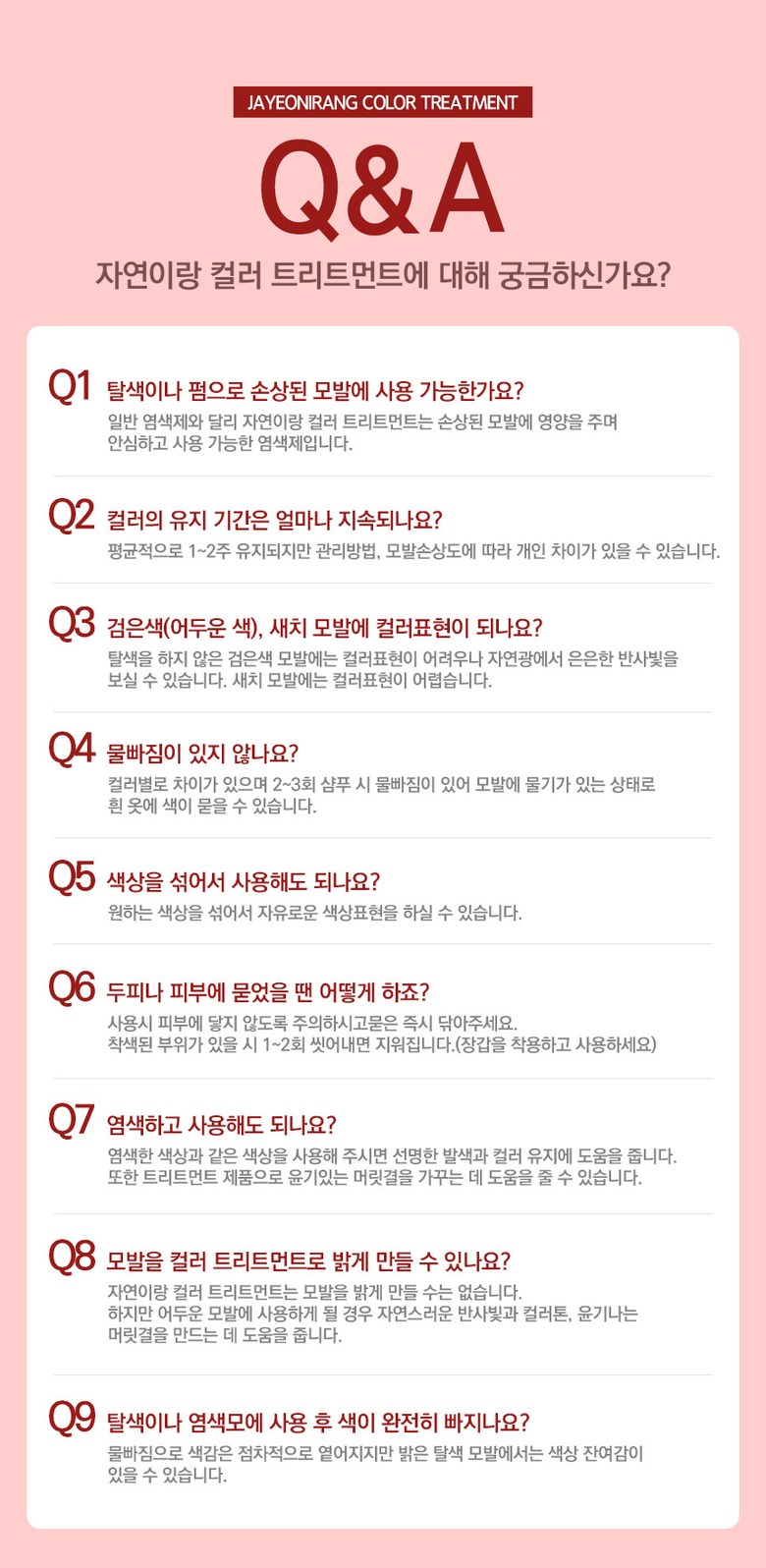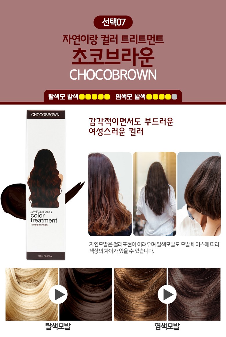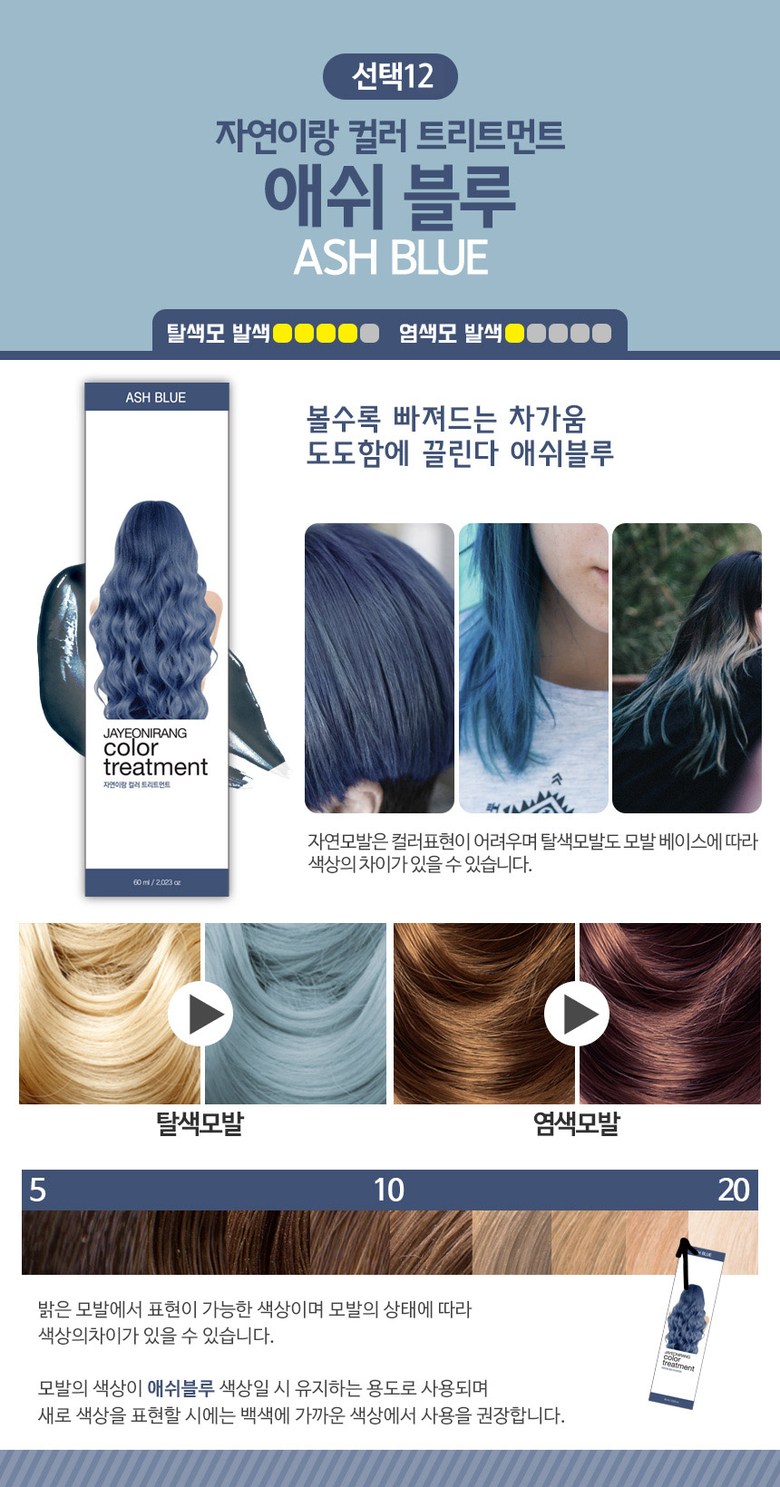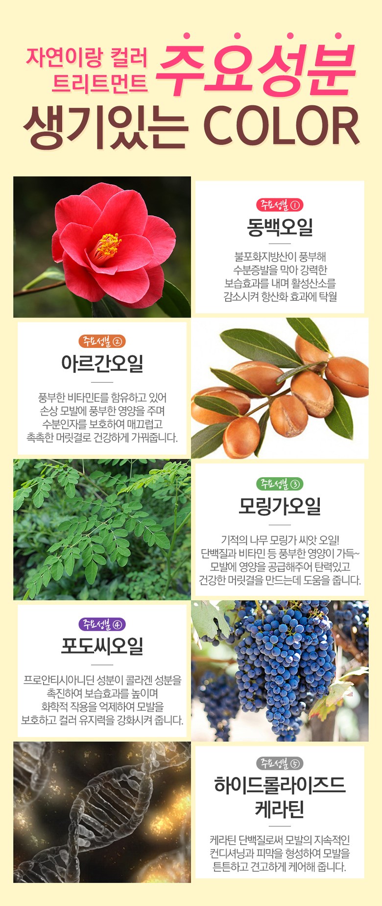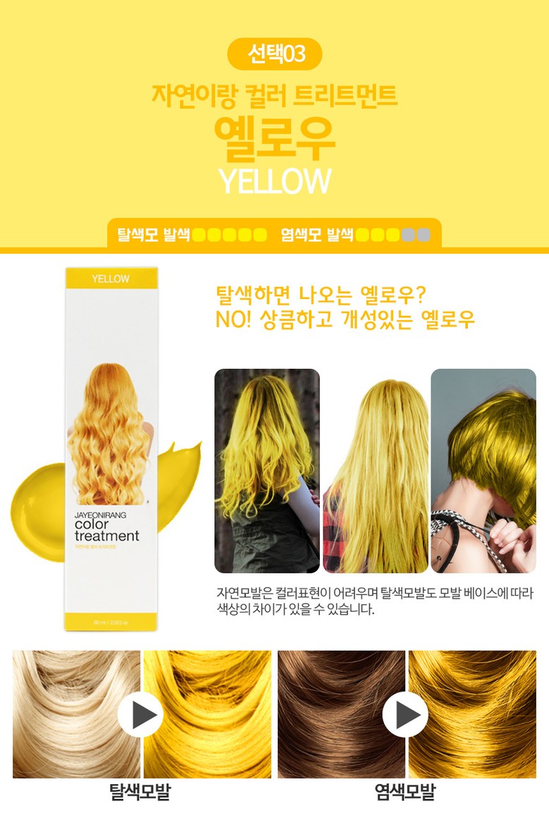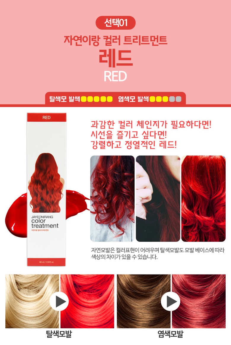 - How to use: 1. After shampooing, use a towel to remove excess moisture. (Do not use rinse, treatment, oil, etc.) 2. After wearing plastic gloves, apply the natural color treatment evenly to the hair. 3. After 15 to 20 minutes, rinse thoroughly with lukewarm water. The longer it is left alone, the more vivid the color becomes. (maximum 25 minutes)4. Dry the hair completely until there is no moisture. (After the treatment, if the hair is not completely dried and the moisture falls off, it may stain the clothes, so be sure to dry the hair.)
