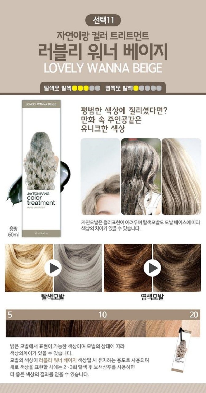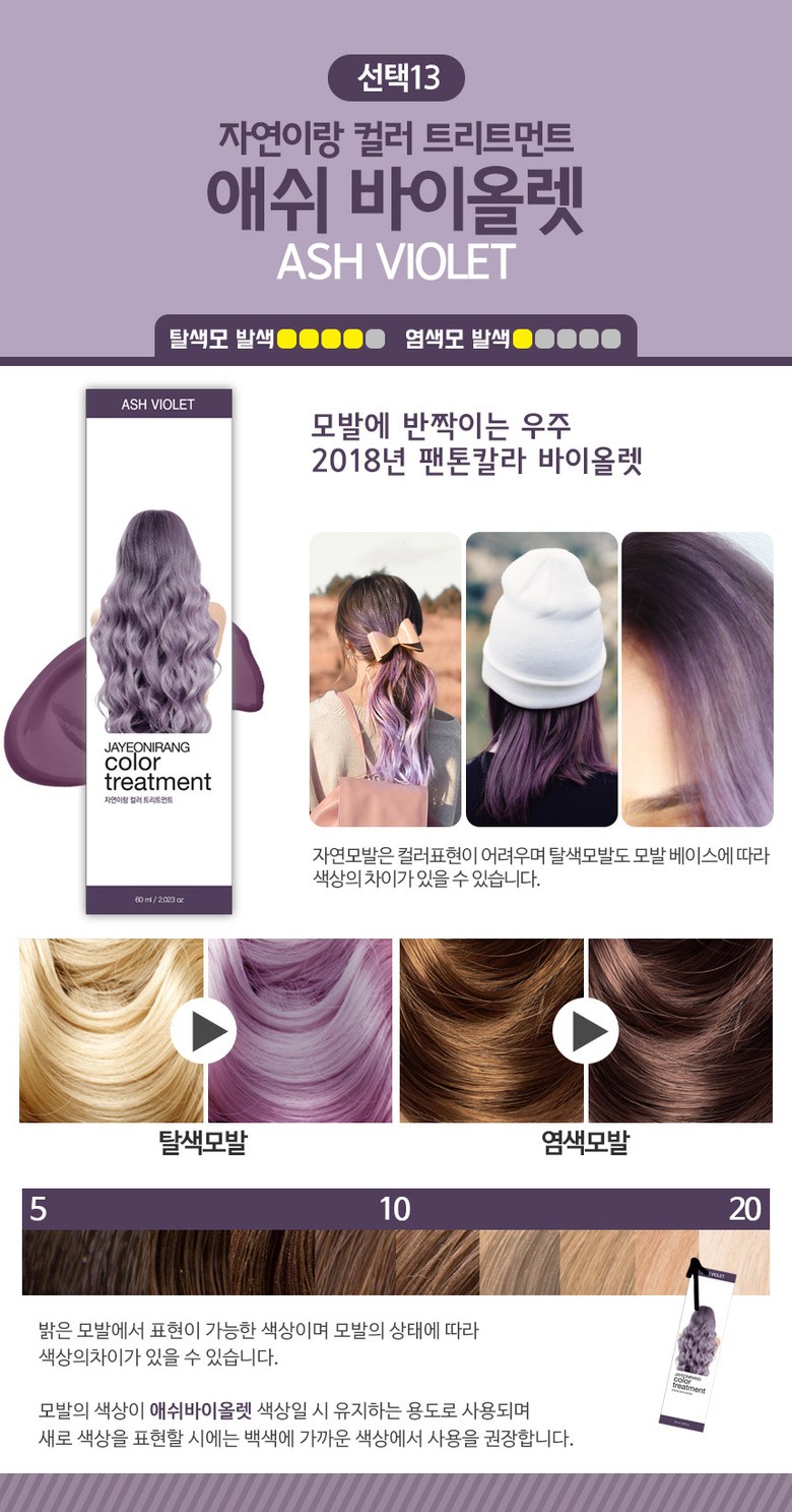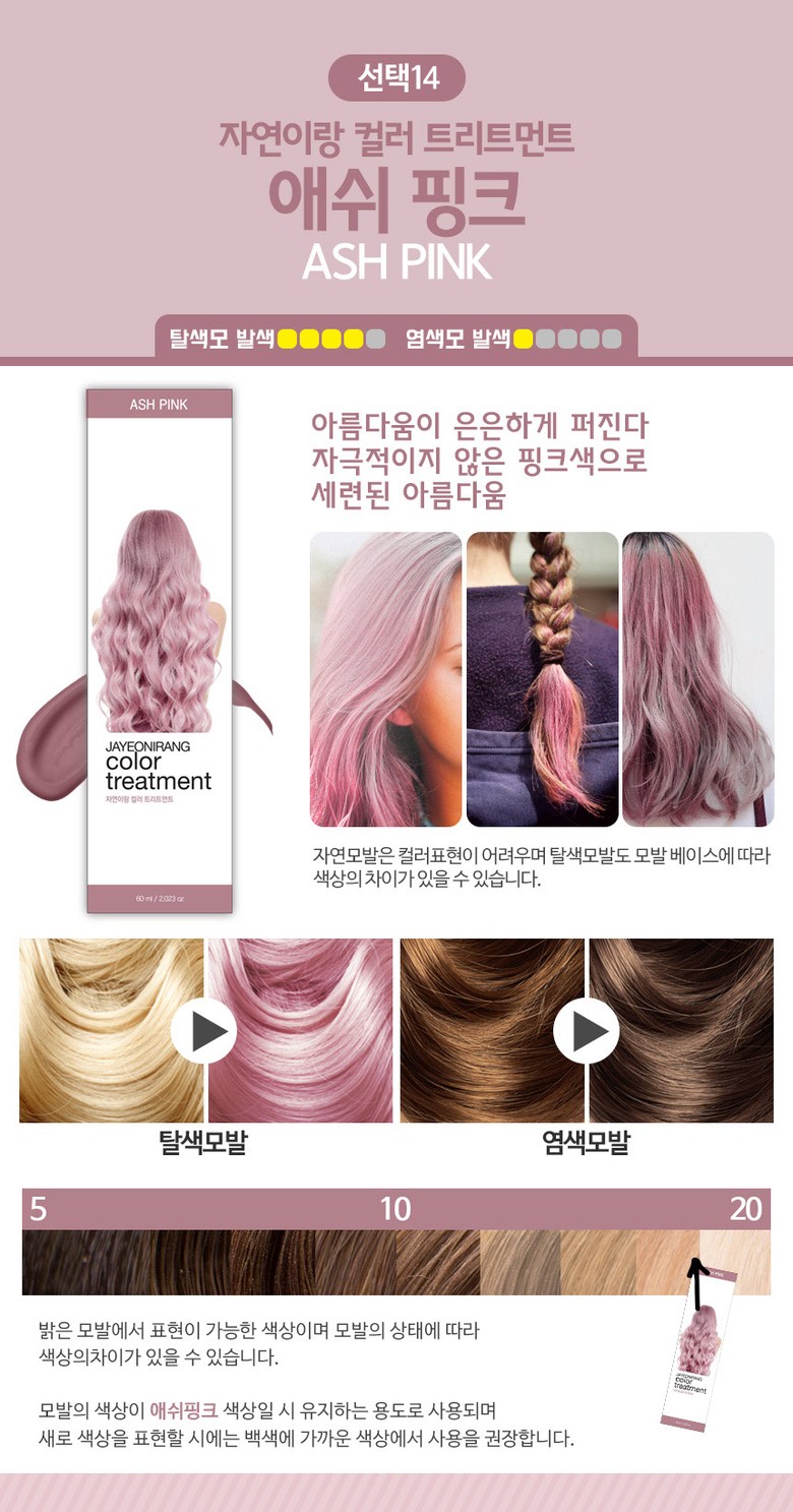 Jayeonlang Color Treatment 60ml (15 types) 2 packs, ash pink (2 ash pink) / 자연이랑 컬러 트리트먼트 60ml (15종) 2개 묶음, 애쉬 핑크(ASH PINK)2개
