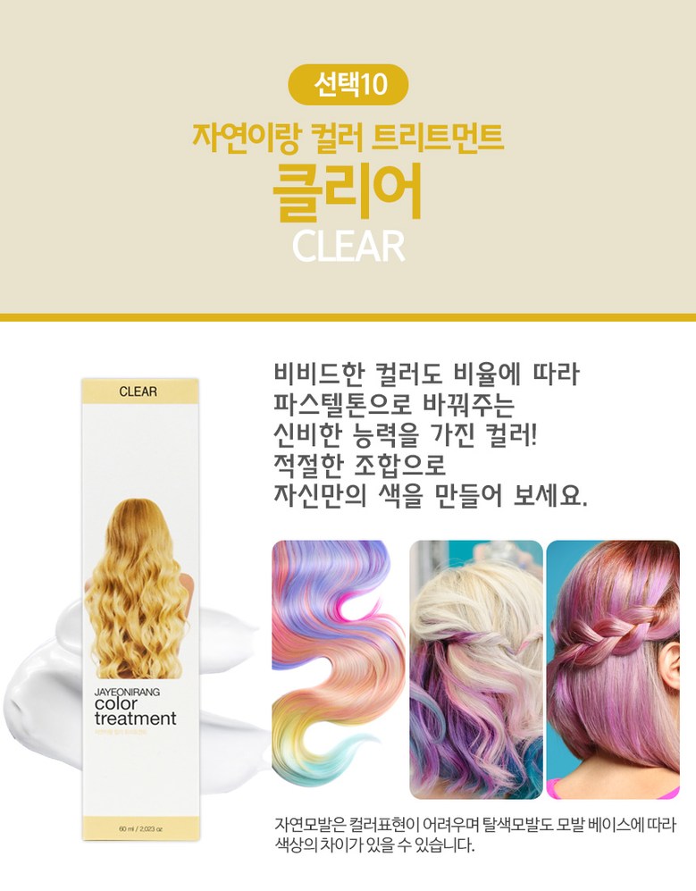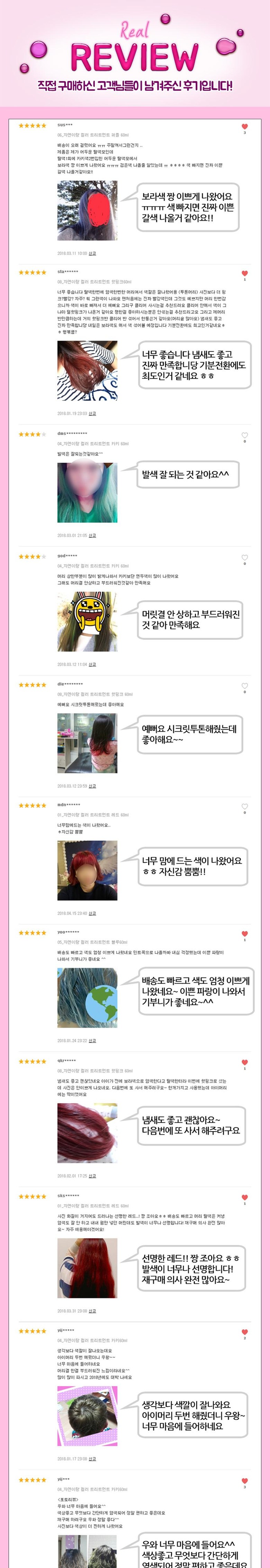 - Precautions when using: 1. The color gradually becomes lighter as the color fades, but there may be color residue on light bleached hair. 2. There may be color differences depending on individual hair condition. In particular, clear and vivid color production is possible when used on bleached hair rather than normal hair.