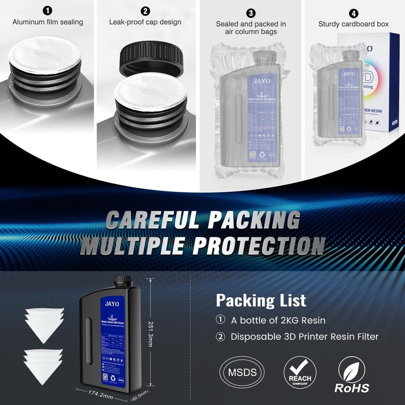 • 【Fast Curing & Low Odor】JAYO 405nm UV curing standard water washable ABS-Like resin has excellent flowability for fast curing. Compared with other brands, the low odor of 3D printer resin can make you more comfortable when printing.