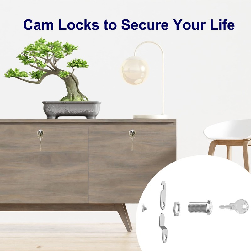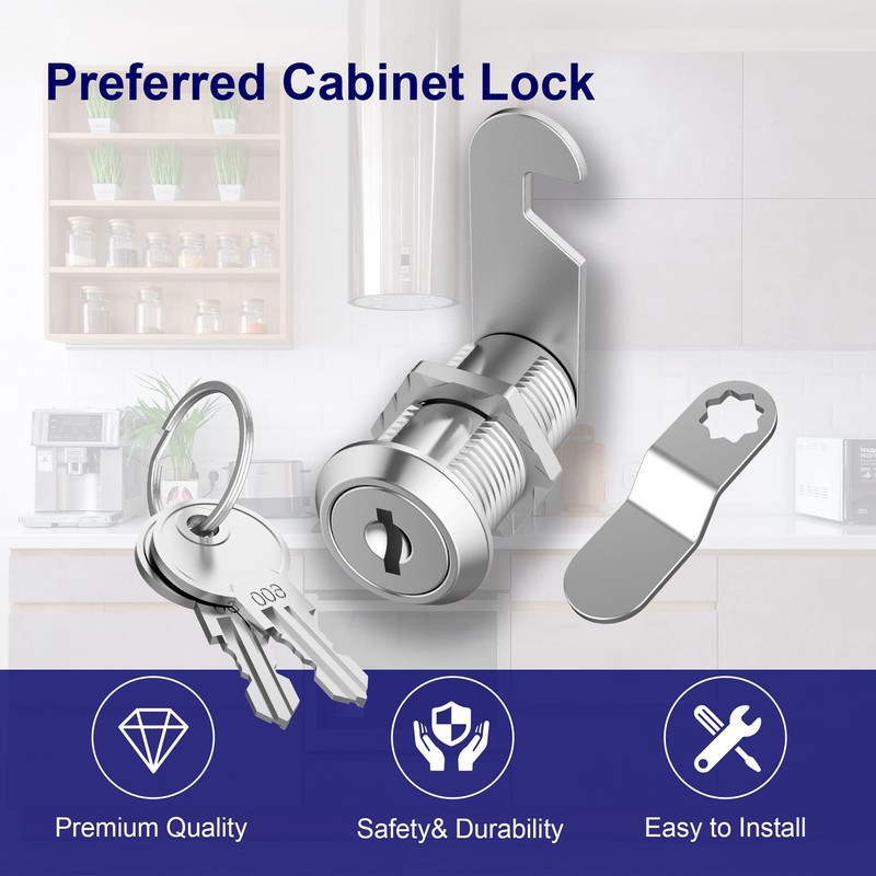 - 🔒 Easy to Install: Cabinet locks whti keys are easy to install with the included screws, making it simple to secure drawers, files, toolboxes, and cabinets.Simply drill a 3/4" hole, insert the tubular cam lock cylinder, adjust the cylinder angle, secure with the nut, and place the locking plate.