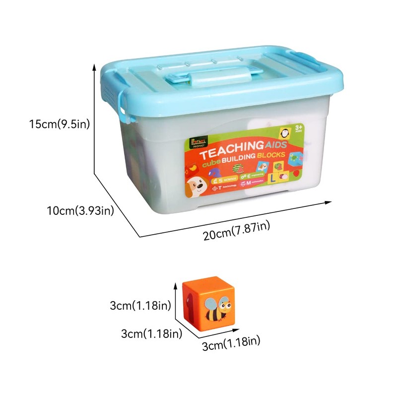 3.Colorful building blocks size:3x3x3cm(1.18x1.18x1.18in)