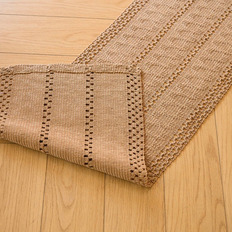 - High Quality Materials The modern macrame table runner is made of cotton, linen and polyester, which is thick, durable, soft to the touch. The edges of the table runner are carefully stitched