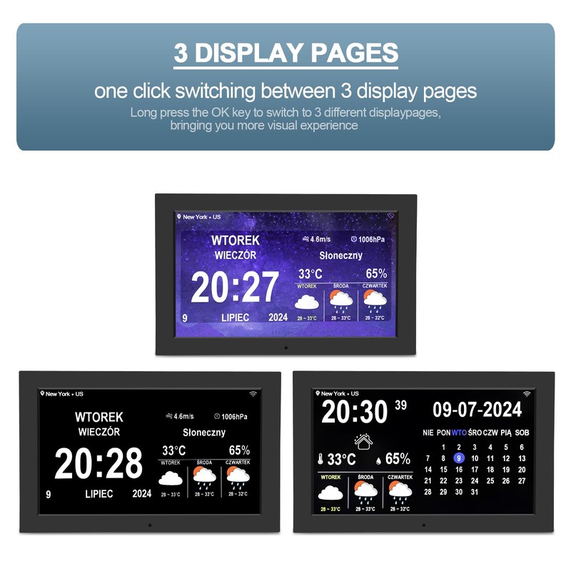 - [Multi-Language Support] Smart calendar supports multiple languages and provides different time formats so that speakers of different languages can use it.10 languages available (English, Russian, German, French, Spanish, Italian, Portuguese, Polish, Dutch, Finnish)