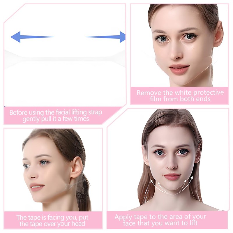 - Easy to Use:This face lift tape with string is easy to use and easy to apply. Simply clean and dry the area to be lifted then attach the lifting strap to the end of this lifting cord and place it against your face and tie the lifting cord to the back of your head. You can make the facial lines smoother, firmer, and achieve a firming effect