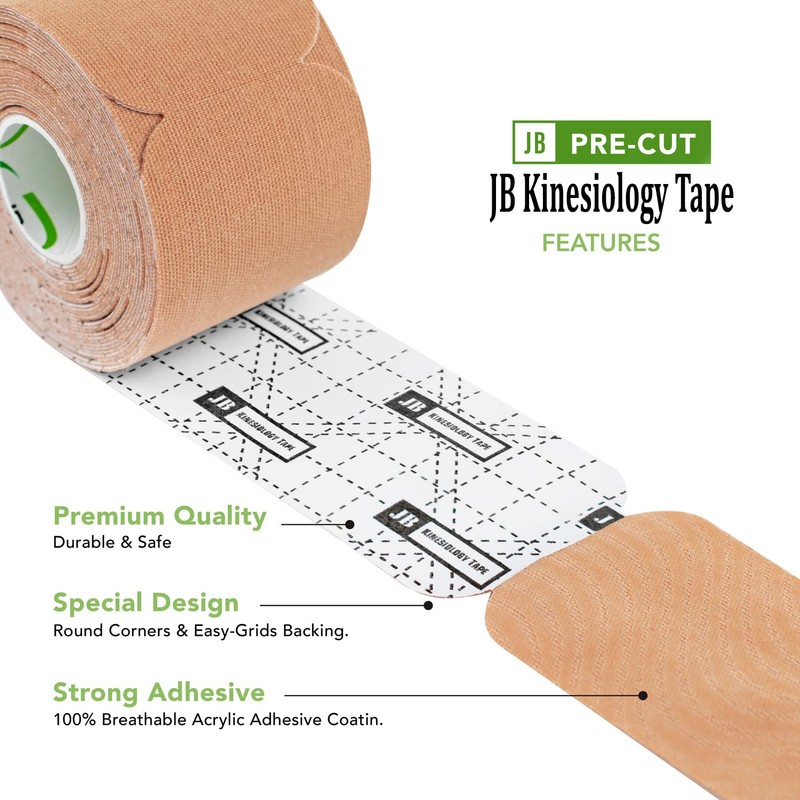 - HUMAN SKIN QUALITY: JB K-Tape designed to be similar in weight and thickness to the human skin. Each Strip is thin, stretchable, precut and rounded corners for comfort, effectiveness and reduce fraying.