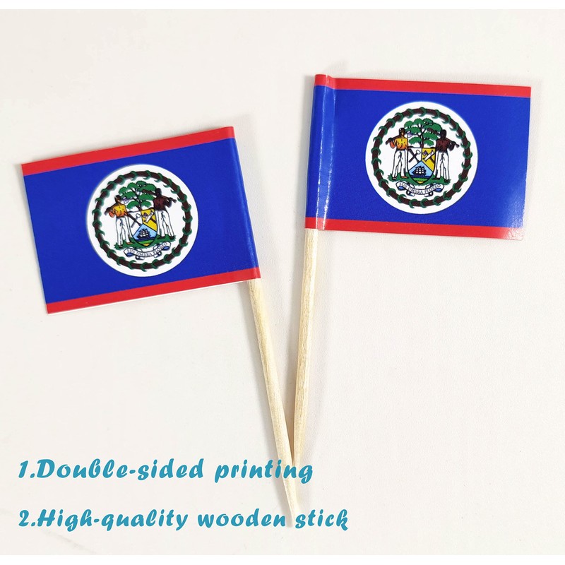• SPECIFICATION: Set of 200 Belize flag toppers, enough for you to use. 1.38x0.98 Inch flag with 2.56 inch wooden toothpicks stick