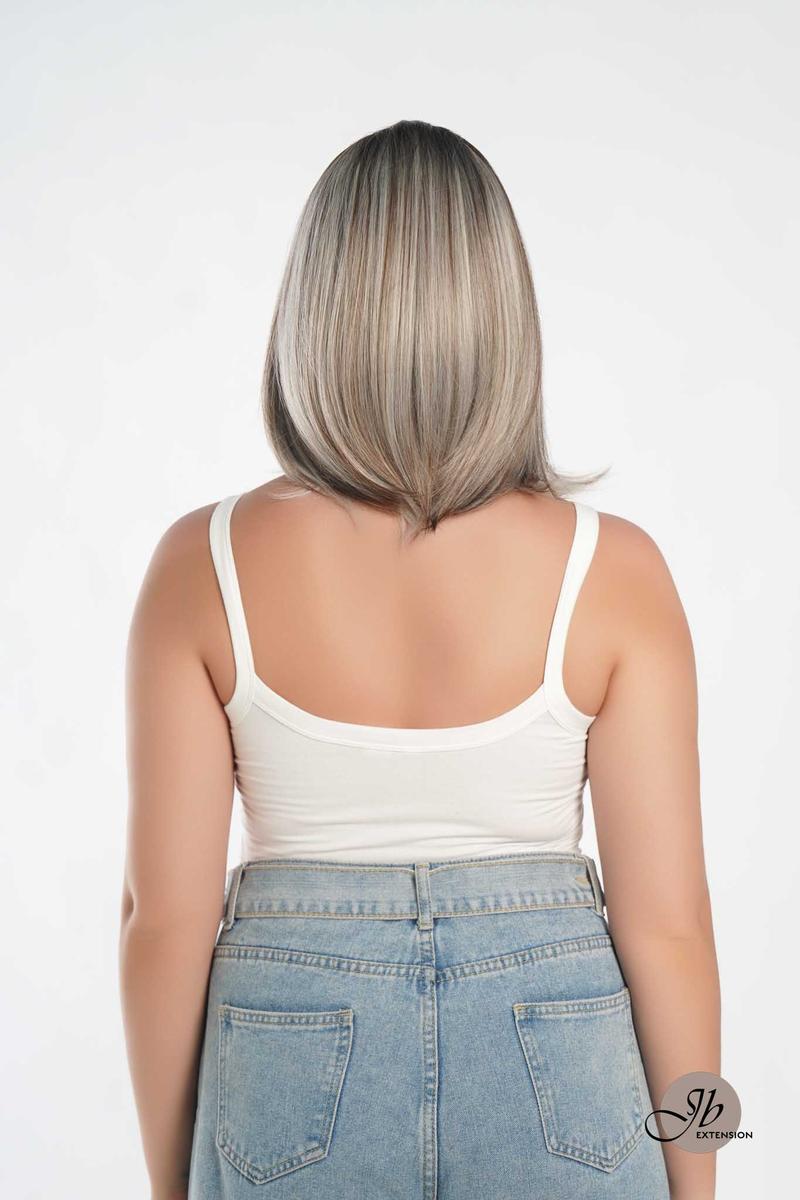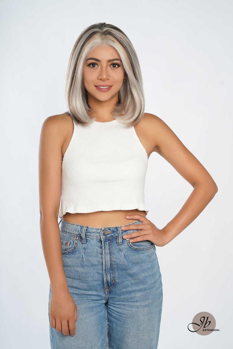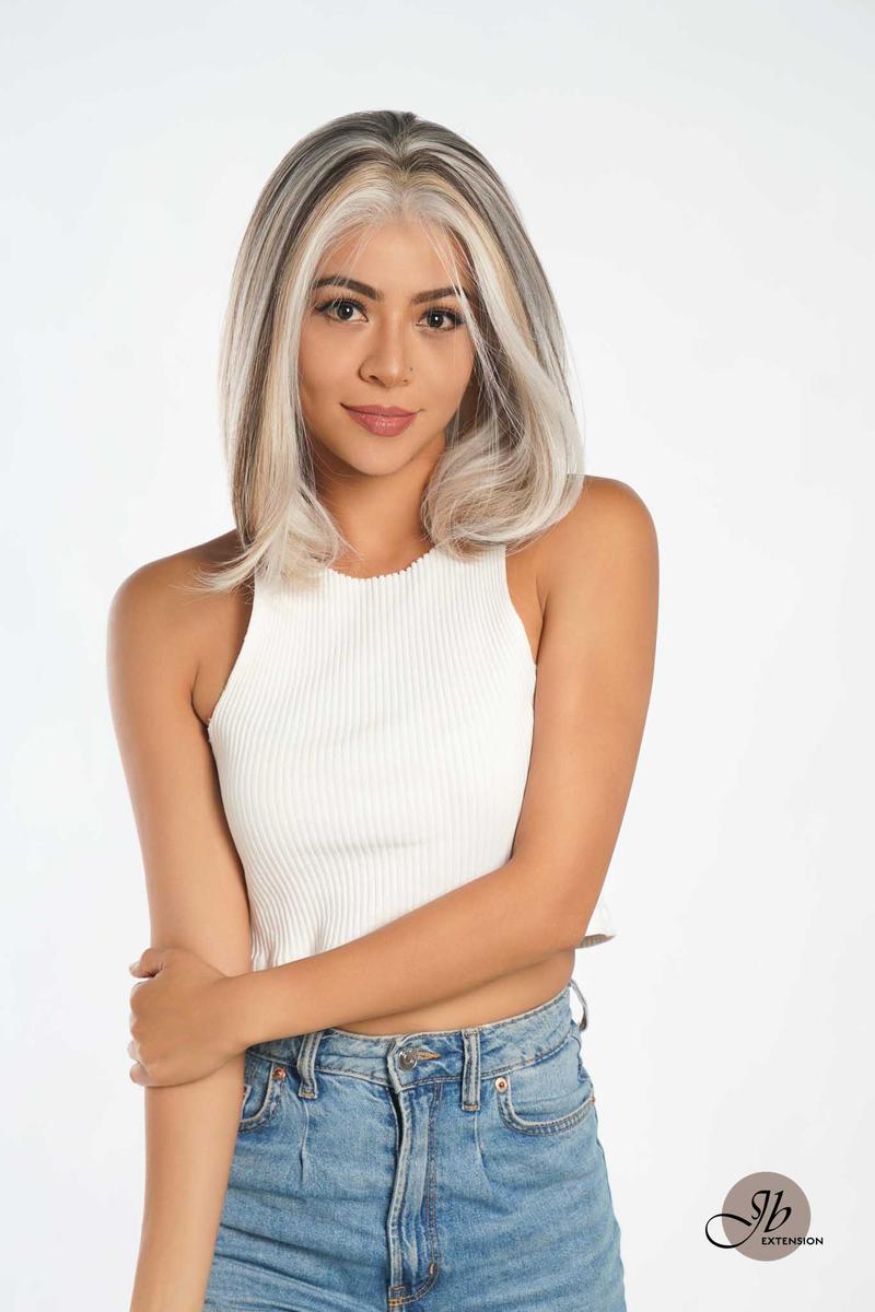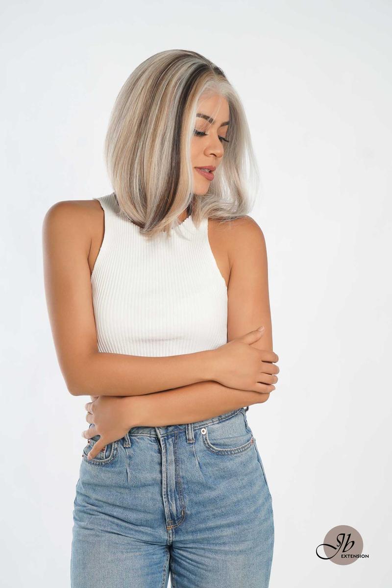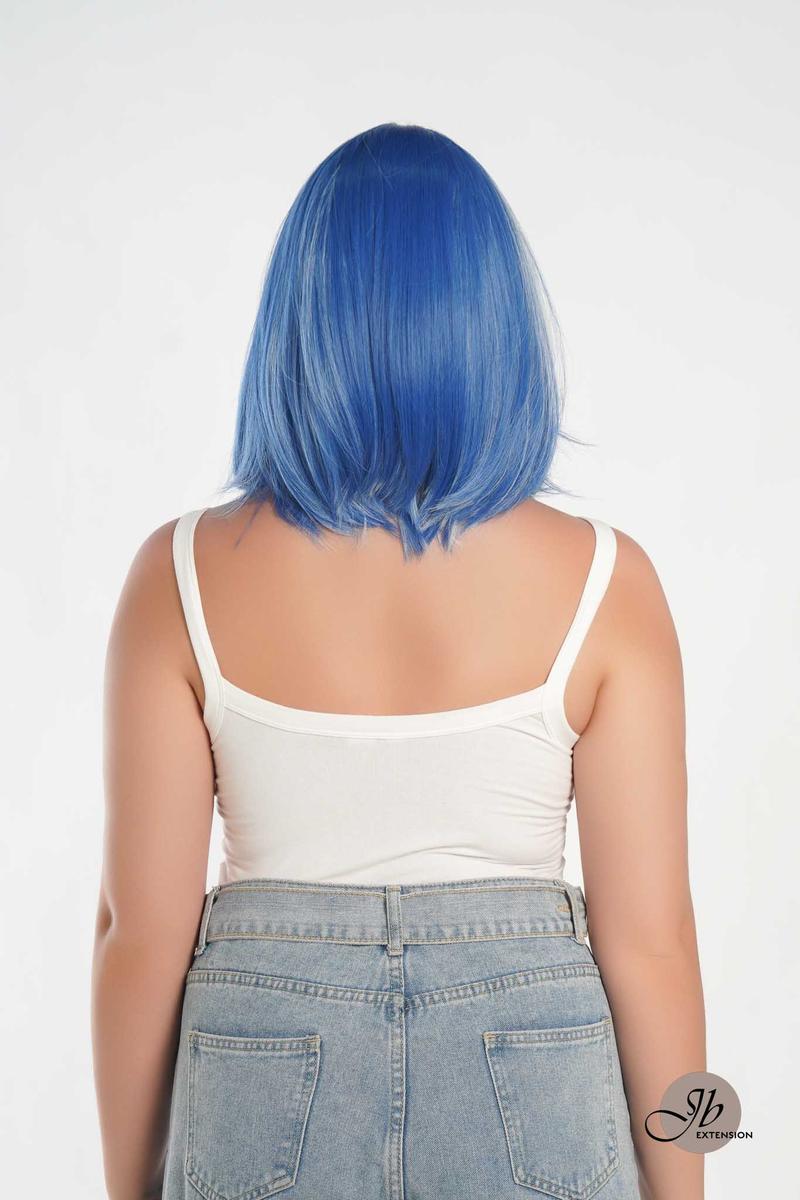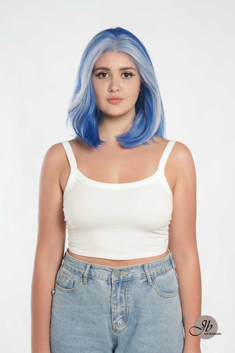 JBEXTENSION 12 Inches Bob Cut Blue With White Highlight Free Part Pre-Cut Frontlace Wig DOLPHIN