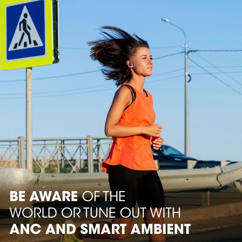 - Active Noise Cancelling listens to your surroundings & filter out distracting noise. Smart Ambient lets you control how much of the outside world you want to hear, so you can talk with others or stay aware of your surroundings and keep your earbuds in.