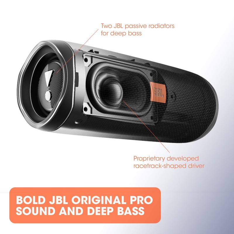 - POWERFUL JBL ORIGINAL PRO SOUND: Feel your music. Flip 5 s all new racetrack-shaped driver delivers bold JBL signature sound. Enjoy booming bass in a small package.