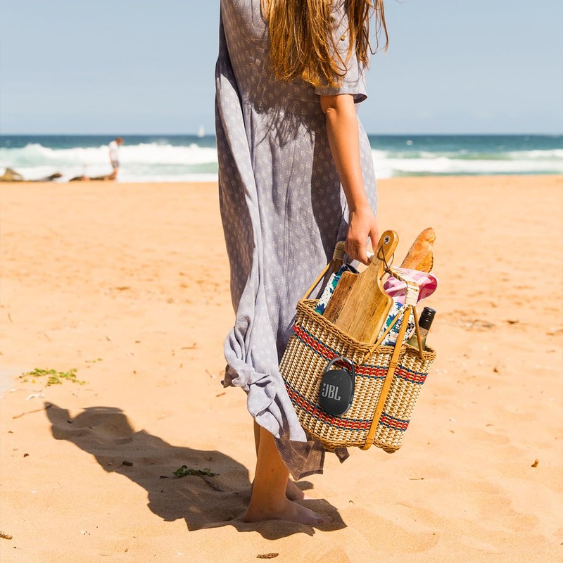 Cool, portable, and waterproof. The vibrant fresh looking JBL Clip 4 delivers surprisingly rich JBL Original Pro Sound in a compact package. The unique oval shape fits easy in your hand. Fully wrapped in colorful fabrics with expressive details inspired by current street fashion, it’s easy to match your style. The fully integrated carabiner hooks instantly to bags, belts, or buckles, to bring your favorite tunes anywhere. Waterproof, dustproof, and up to 10 hours of playtime, it’s rugged enough to tag along wherever you explore.