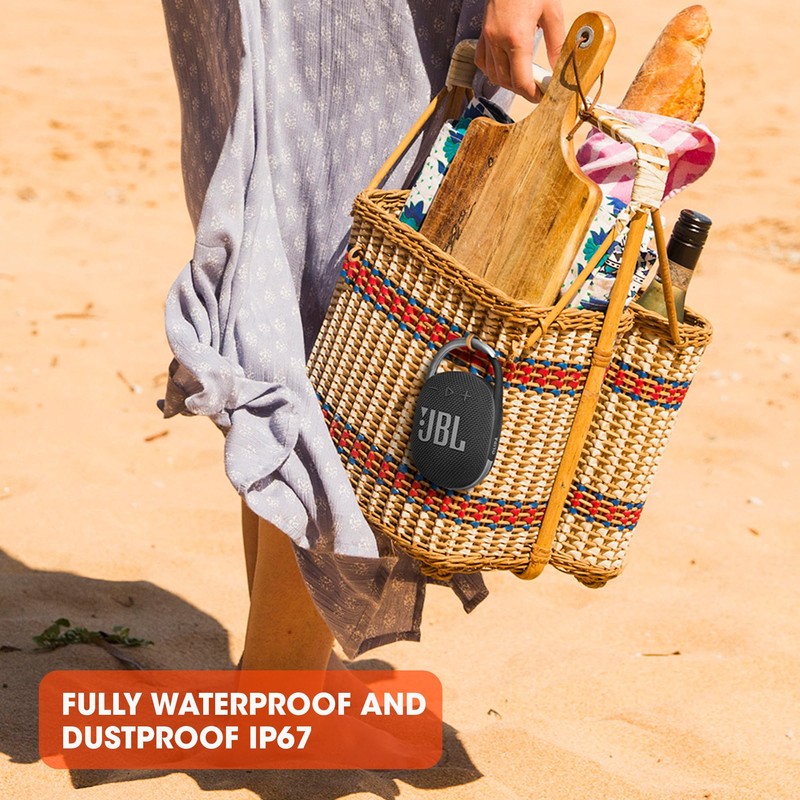 - The JBL Clip 4 is IP67 waterproof and dustproof, so you can bring your speaker anywhere.