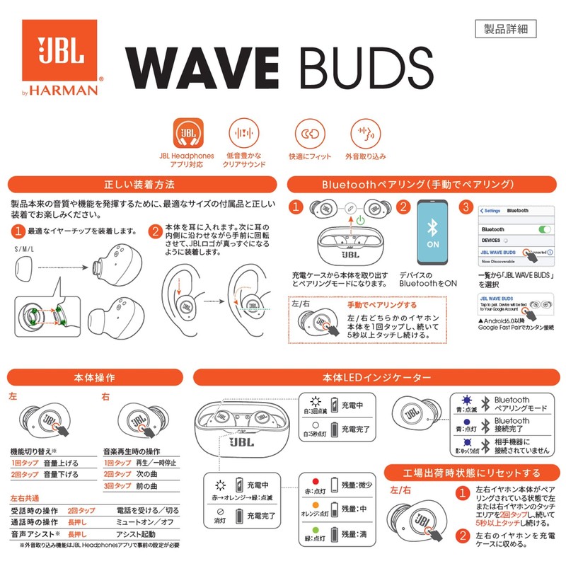 JBL Wave BUDS Full Wireless Earphones, Bluetooth/IP54 Waterproof, Dustproof, App Compatible, USB Type C, Black, JBLWBUDSBLK Small