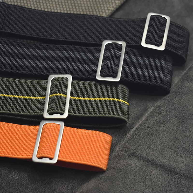 - 【Material】100% Brand New Materials: Parachute Special Elastic nylon, it's a high-density special rubber nylon belt, can withstand high tension and remain elastic. Easy to wear it and install it into your watch strap replacement. Military army style watch strap design. Special Design Hook Buckle.