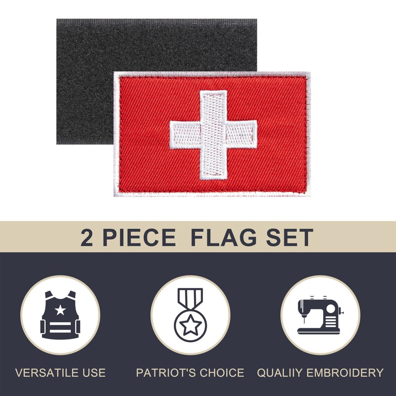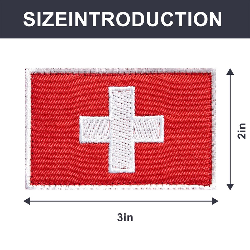 JBSJBS Switzerland Flag Embroidered Patches Swiss Flags Patch Switzerland Military Tactical Patch Team Logo Decorations(2Pack)