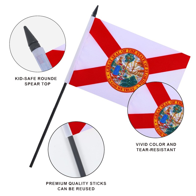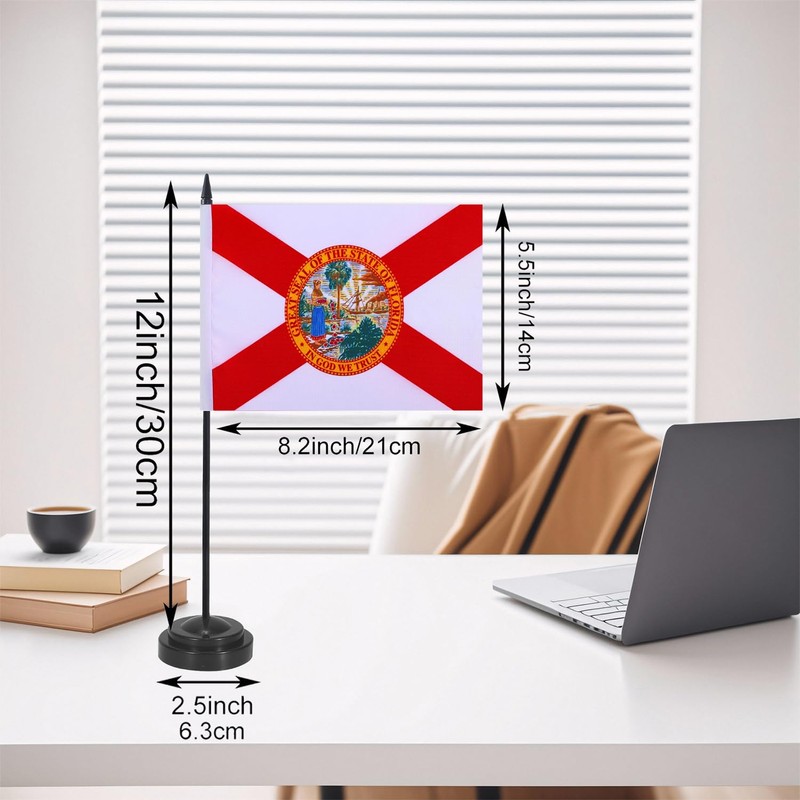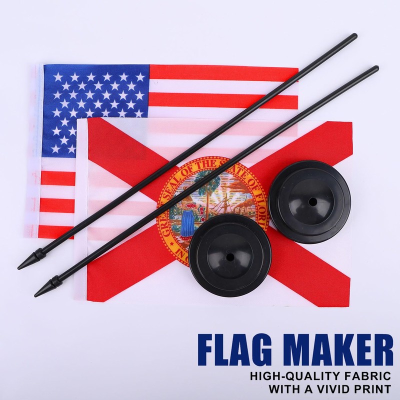 JBSJBS USA Florida Desk Flag 12" Solid Pole Deluxe Set US Florida Flags Banner Mini Small American State Office Table Flags with Black Stand Base Desktop Decorations(2Pack)