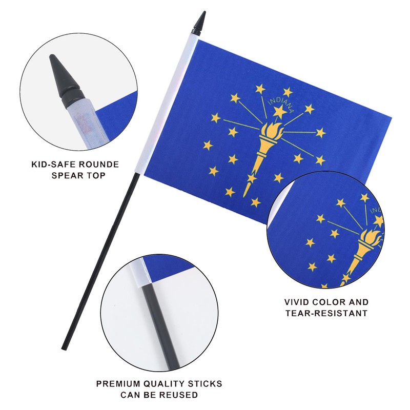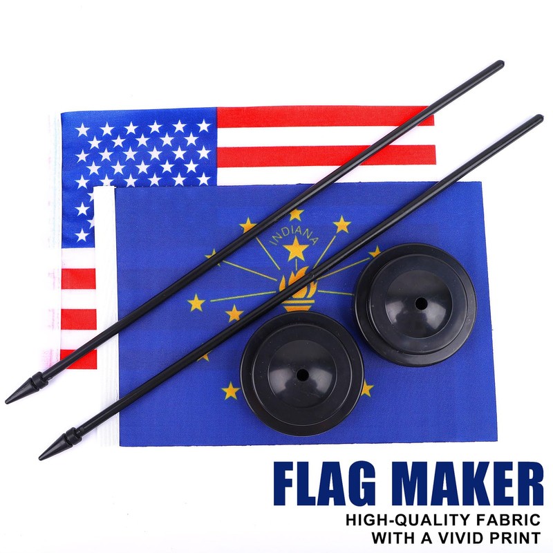 JBSJBS USA Indiana Desk Flag 12" Solid Pole Deluxe Set US Indiana Flags Banner Mini Small American State Office Table Flags with Black Stand Base Desktop Decorations(2Pack)