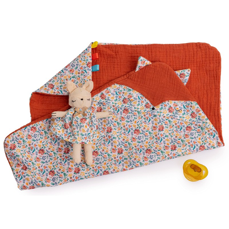 - 15.5" SOFT BODY BABY DOLL // Brown Eyes / Includes washable baby doll dressed in a nature-themed outfit, a matching cap + booties + blanket + soft animal friend + pacifier.