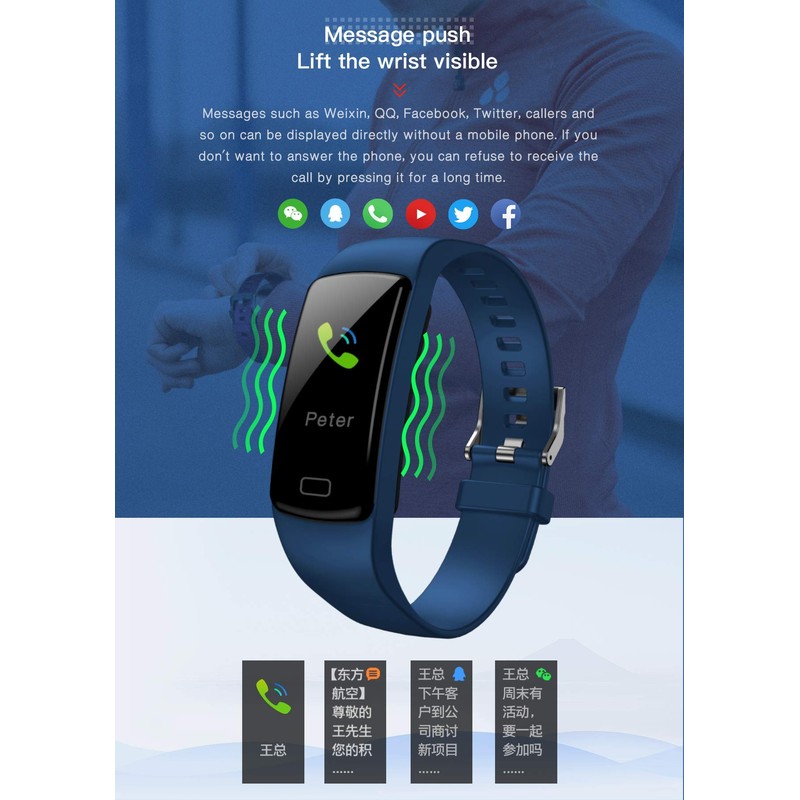 • Reminder functions: social media access and message reminders; it also includes alarm and sedentary alert